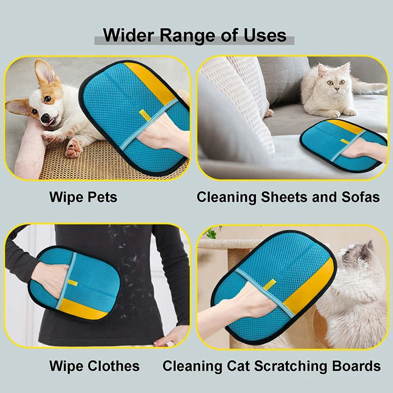 1,Double-sided design for higher productivity --- Crafted with a dual - surface layout, these gloves efficiently pick up and gather pet fur whether you use your left or right hand. This speeds up the grooming or cleaning process and adds extra convenience.